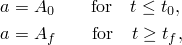 Abaqus/Standard and Abaqus/Explicit can calculate amplitudes based on smooth step data. Choose the smooth step definition method to define the amplitude, a, between two consecutive data points