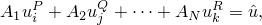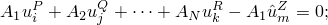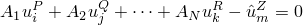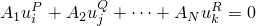 There are three terms in this equation (N=3). P=5, i=3, =1.0, Q=6, j=1, =–1.0, R=1000, k=3, and =1.0.