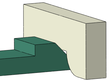 Transitions between the predominant type of contact formulation active in a local region are common. For example, the edge-to-surface contact formulation would be predominant at the stage of the snap-fit simulation shown in Figure 36.2.1–2, because the active contact zone corresponds to a feature edge.
