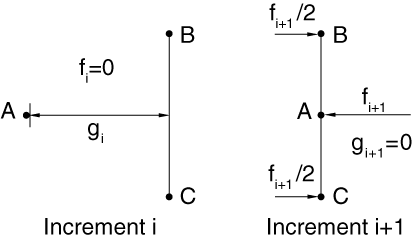 , in the next increment (see Figure 36.2.1–9). A trapezoidal rule for integrating the work done by the contact force multiplies the average force by the relative incremental motion. In this case the resulting contribution to ALLCCDW is negative