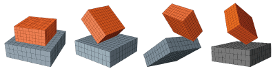 Additional discussion of the surface-to-surface contact formulation is provided in “Surface-to-surface contact discretization” in “Contact formulations in Abaqus/Standard,” Section 38.1.1. See “Edge-to-surface contact scenarios,” “Edge-to-edge contact scenarios,” and “Vertex-to-surface contact scenarios,” below, for more information on the supplementary contact formulations.