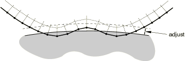 Figure 36.3.5–2 Configuration of the contact surfaces after the adjustment. Nodes within the adjustment zone and overclosed nodes have been moved.
