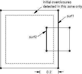 *CONTACT CLEARANCE, NAME=c1, ADJUST=YES, SEARCH BELOW=0.2 SEARCH ABOVE=0.0and assign it to the interaction between surf1 and surf2: