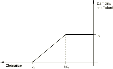 , is a function of surface clearance, as shown in Figure 37.1.3–1. The damping coefficient is defined as a proportionality constant with units of pressure divided by velocity.