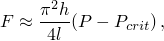 When the column first buckles, the contact force, F, that the column exerts on one of the rigid surfaces can be approximated as