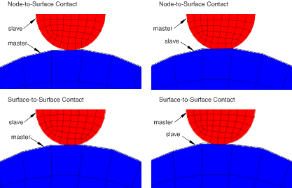 The choice of master and slave roles typically has much less effect on the results with a surface-to-surface contact formulation than with a node-to-surface contact formulation. However, the assignment of master and slave roles can have a significant effect on performance with surface-to-surface contact if the two surfaces have dissimilar mesh refinement; the solution can become quite expensive if the slave surface is much coarser than the master surface.