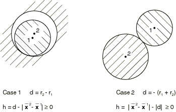 If d is negative, the GAPSPHER element models external contact between two rigid spheres (see Case 2 in Figure 40.2.1–2). In this case